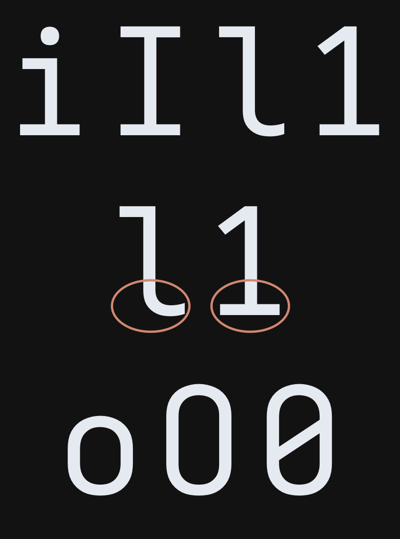 Critical letter forms: i, I, l, 1; o, O, 0
