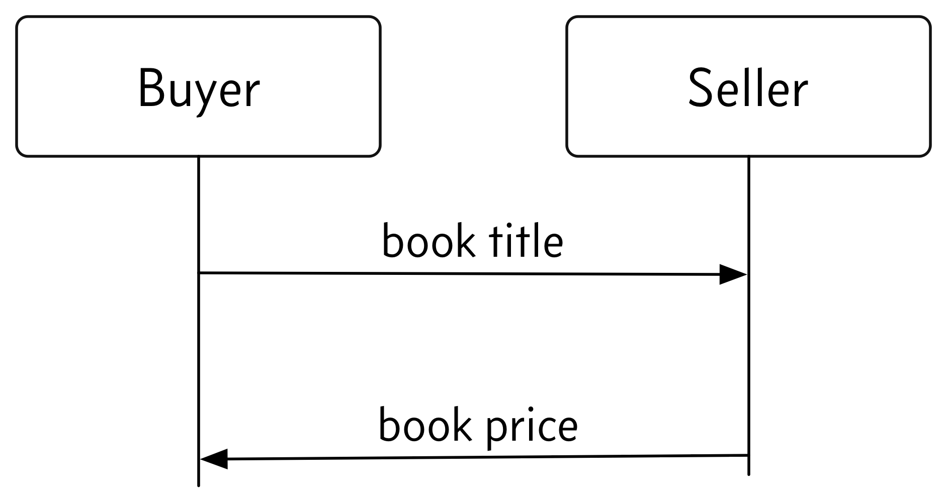 Here’s a simple, classic example: someone wants to buy a book, so they ask the seller for the price. The seller responds with the price. Here’s a diagram of that communication: